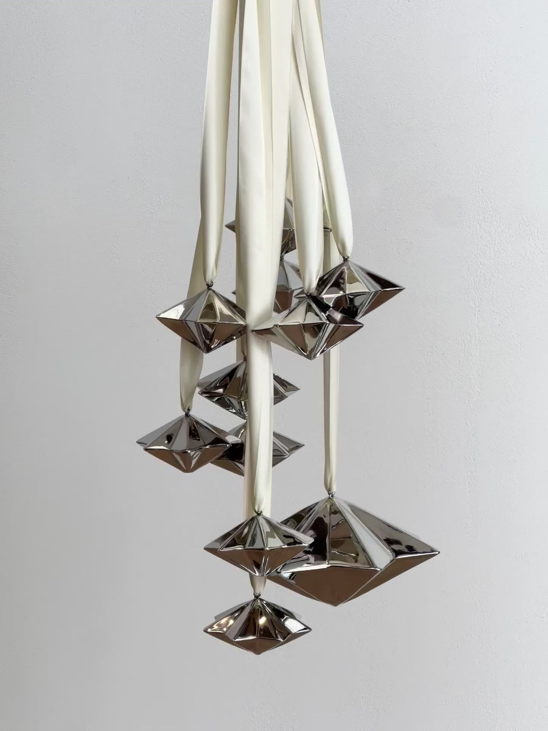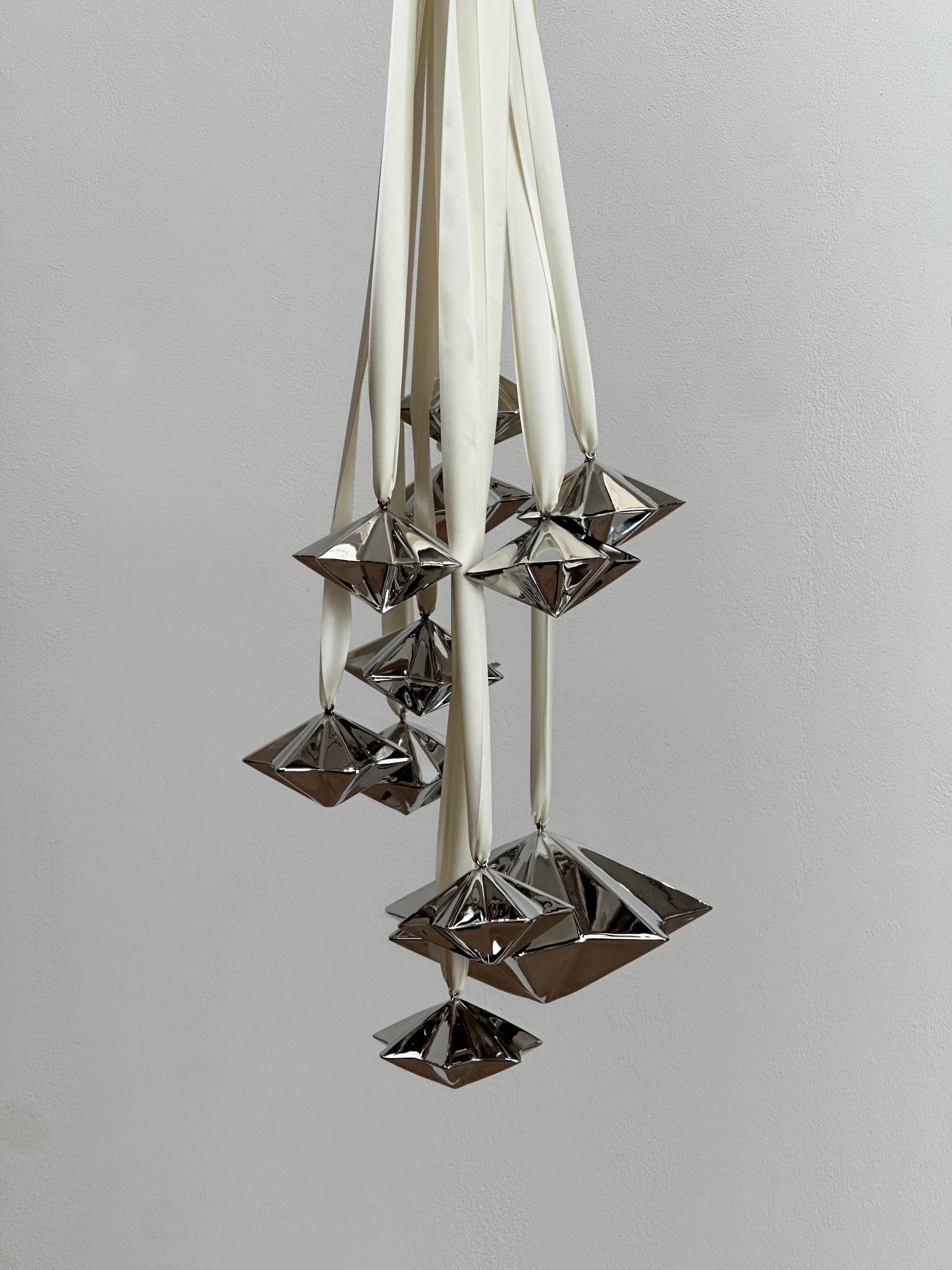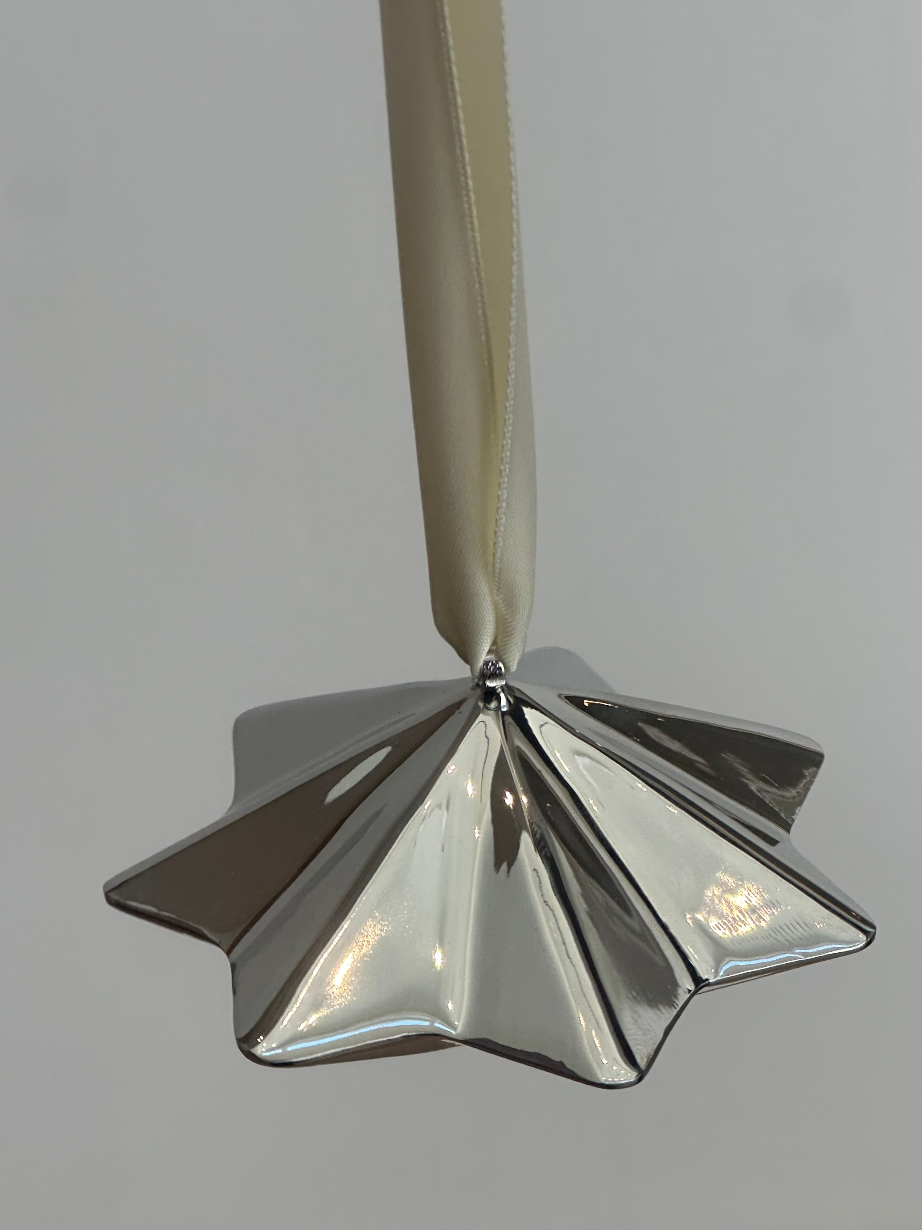 These contemporary Christmas ornaments, crafted in Dubai from polished stainless steel, bring a modern, sculptural elegance to the holiday season. Each ornament is shaped using our signature "Blockies" star design, its faceted surfaces catching and reflecting light beautifully as it hangs from a soft ribbon.
